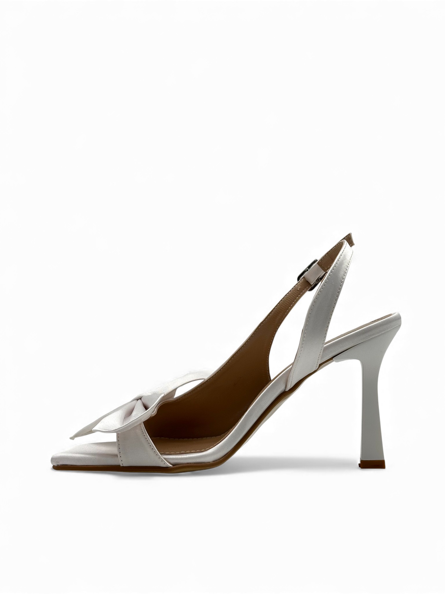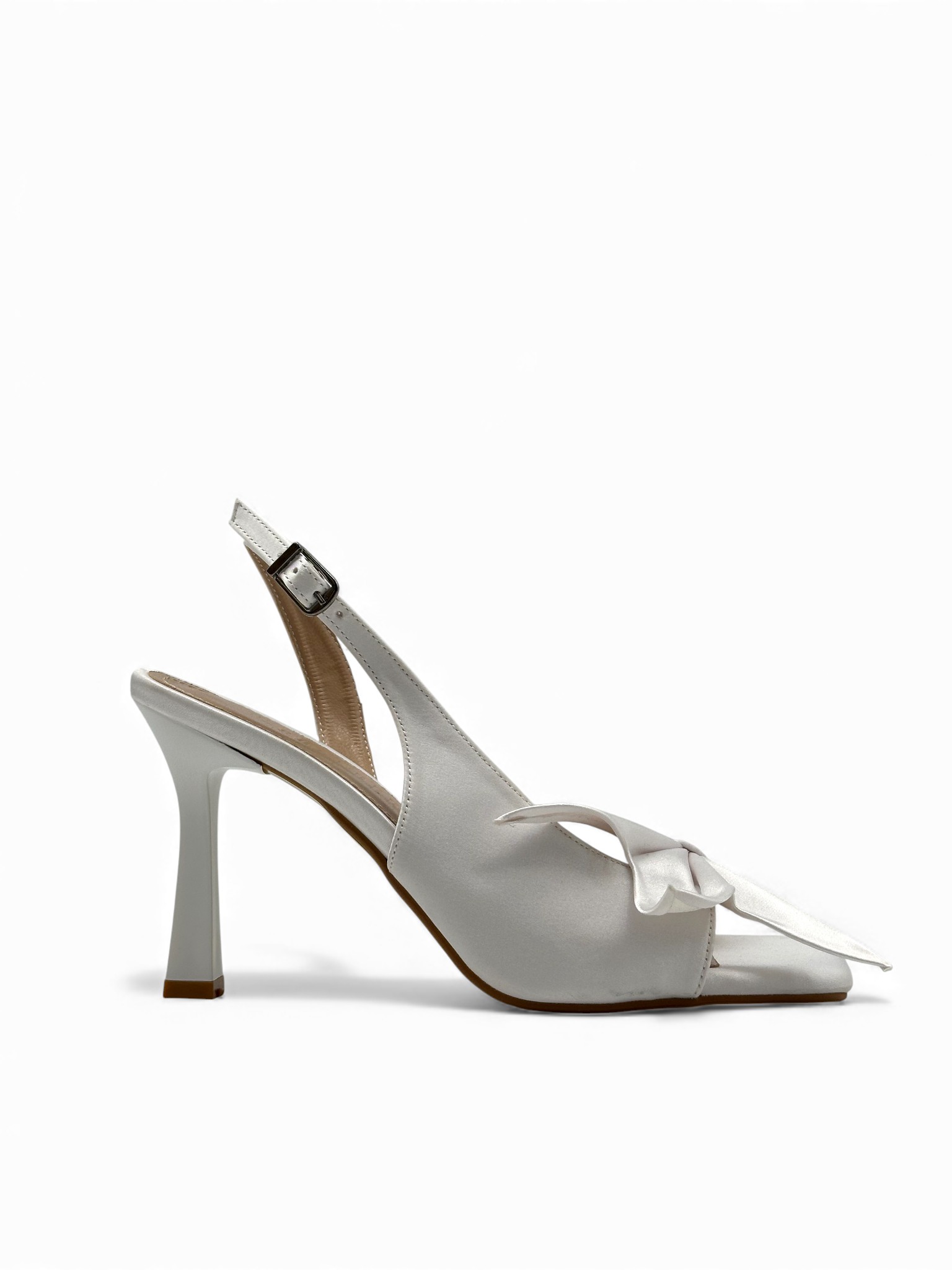 Bele sedefaste štikle sa suptilnom, tankom mašnom odišu čistom elegancijom i nežnim luksuzom. Visoka potpetica izdužuje siluetu, dok kopča oko pete pruža sigurnost i stabilnost pri hodu. Zahvaljujući diskretnom sjaju i prefinjenom dizajnu, ovaj model je idealan izbor za posebne prilike kada želiš sofisticiran, ali nenametljivo glamurozan izgled.
